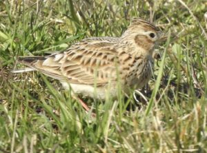 Anders Lennartsson berättade för gruppen om lärkorna, som funnits på Ladugårdsgärde i flera hundra år. De har halverats de sista tio åren, på grund av tryck från olika evenemang, från 15 revir till runt 8 revir.